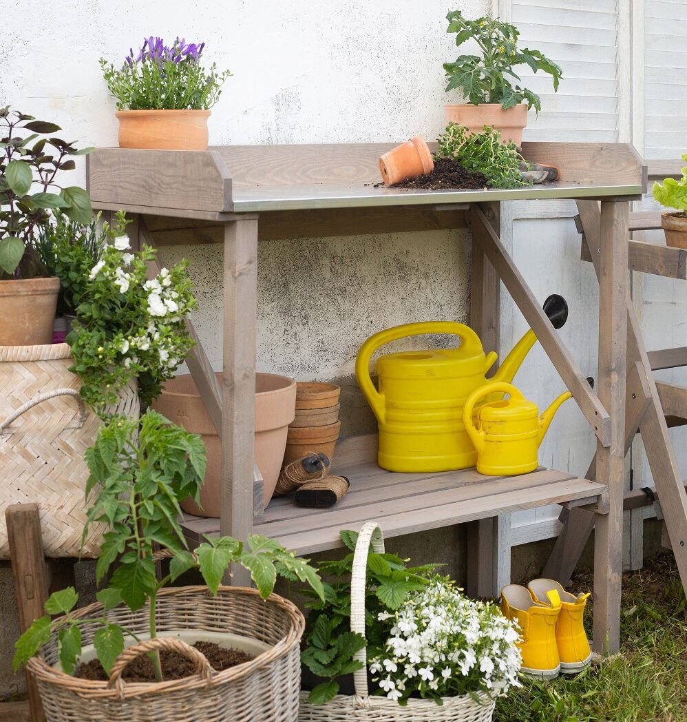 Functional and stylish tables for seamless planting and potting.